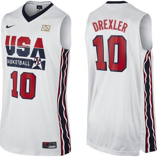 Men's Nike Team USA #10 Clyde Drexler Swingman White 2012 Olympic Retro Basketball Jersey