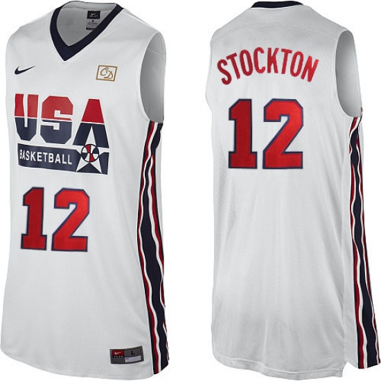 Men's Nike Team USA #12 John Stockton Swingman White 2012 Olympic Retro Basketball Jersey