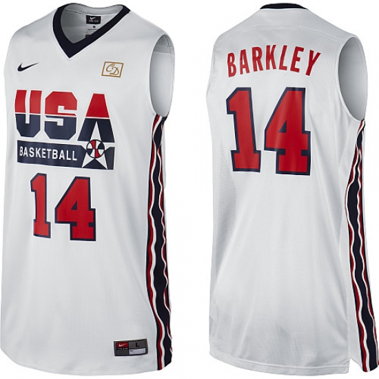 Men's Nike Team USA #14 Charles Barkley Swingman White 2012 Olympic Retro Basketball Jersey