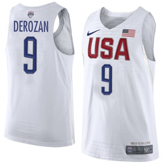 Men's Nike Team USA #9 DeMar DeRozan Authentic White 2016 Olympic Basketball Jersey