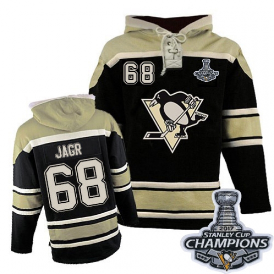 Men's Old Time Hockey Pittsburgh Penguins #68 Jaromir Jagr Authentic Black Sawyer Hooded Sweatshirt 2017 Stanley Cup Champions
