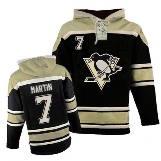 Home>NHL>Pittsburgh Penguins>Paul Martin>Men's Old Time Hockey Pittsburgh Penguins #7 Paul Martin Authentic Black Sawyer Hooded Sweatshirt NHL Jersey