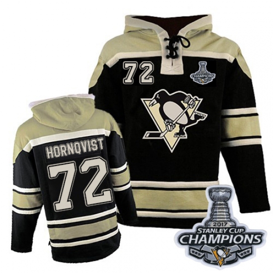 Men's Old Time Hockey Pittsburgh Penguins #72 Patric Hornqvist Authentic Black Sawyer Hooded Sweatshirt 2017 Stanley Cup Champions