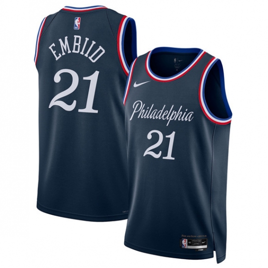 >Men's Philadelphia 76ers #21 Joel Embiid Navy 2025-26 City Edition Swingman Stitched Jersey