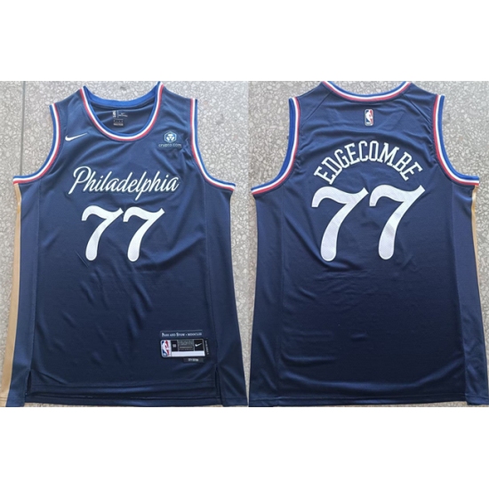 Men's Philadelphia 76ers #77 V. J. Edgecombe Navy 2025-26 City Edition Stitched Jersey