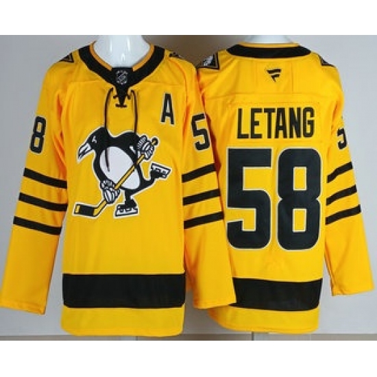 >Men's Pittsburgh Penguins #58 Kris Letang Yellow Alternate Authentic Jersey