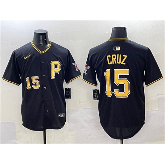 >Men's Pittsburgh Pirates #15 Oneil Cruz Black 2025 Limited Stitched Baseball Jersey