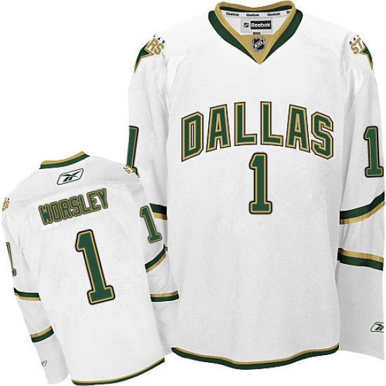 Home>NHL>Dallas Stars>Gump Worsley>Men's Reebok Dallas Stars #1 Gump Worsley Premier White Third NHL Jersey