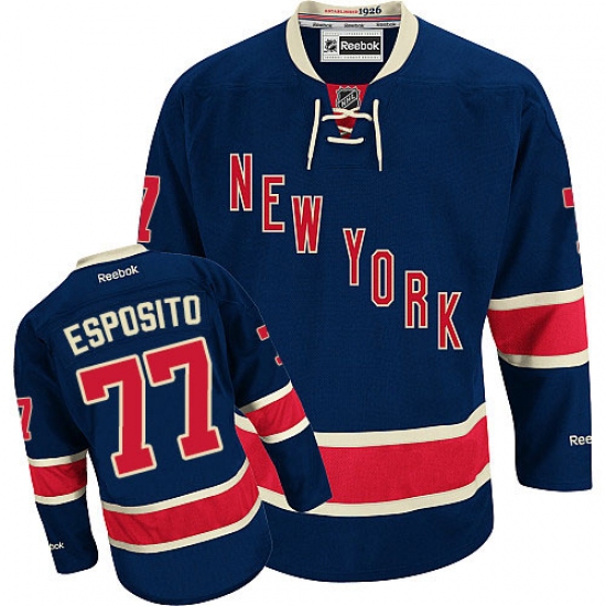 Men's Reebok New York Rangers #77 Phil Esposito Authentic Navy Blue Third NHL Jersey