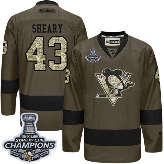 Home>NHL>Pittsburgh Penguins>Conor Sheary>Men's Reebok Pittsburgh Penguins #43 Conor Sheary Authentic Green Salute to Service 2017 Stanley Cup Champions NHL Jersey