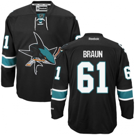 Home>NHL>San Jose Sharks>Justin Braun>Men's Reebok San Jose Sharks #61 Justin Braun Authentic Black Third NHL Jersey