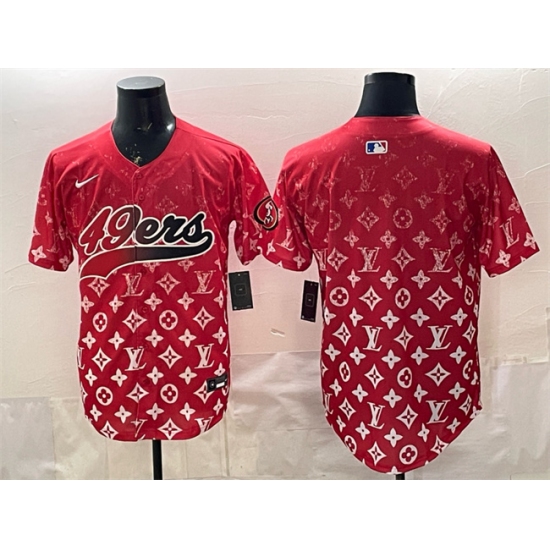 Men's San Francisco 49ers Blank Red Black White Blue Two Tone Stitched Baseball Jersey