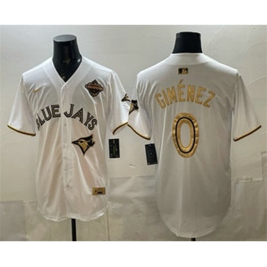 >Men's Toronto Blue Jays #0 Andres Gimenez White Gold 2025 American League Champions Limited Jersey
