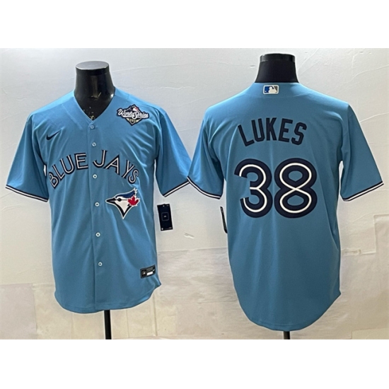 >Men's Toronto Blue Jays #38 Nathan Lukes Blue 2025 World Series Cool Base Stitched Baseball Jersey