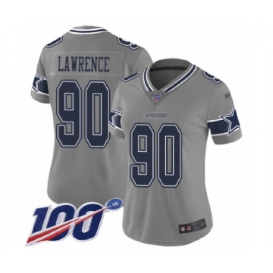 >Women's Dallas Cowboys #90 DeMarcus Lawrence Limited Gray Inverted Legend 100th Season Football Jersey