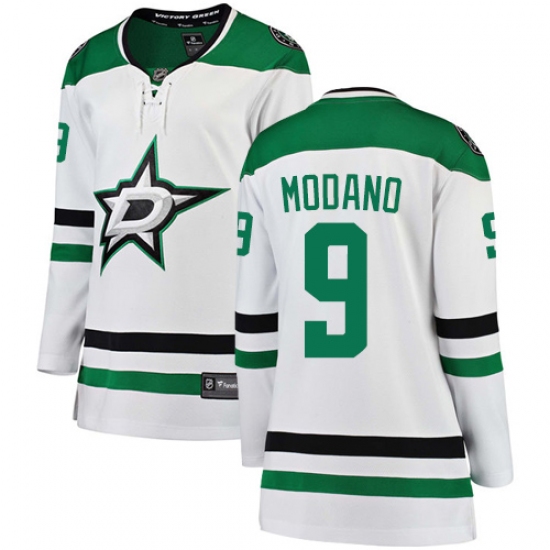 Women's Dallas Stars #9 Mike Modano Authentic White Away Fanatics Branded Breakaway NHL Jersey