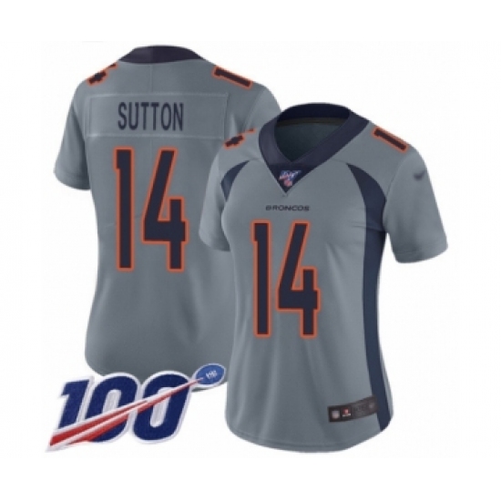 Women's Denver Broncos #14 Courtland Sutton Limited Silver Inverted Legend 100th Season Football Jersey