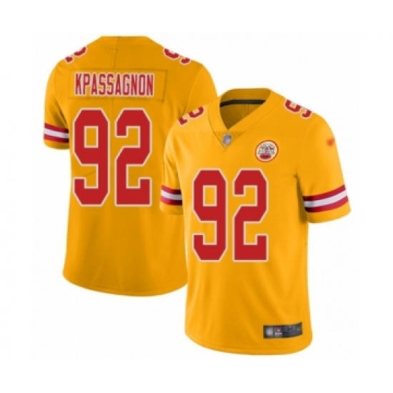 Men's Kansas City Chiefs #92 Tanoh Kpassagnon Limited Gold Inverted Legend 100th Season Football Jersey