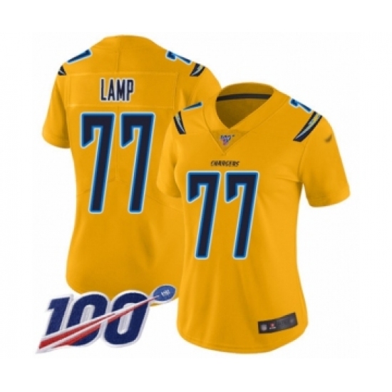 >Women's Los Angeles Chargers #77 Forrest Lamp Limited Gold Inverted Legend 100th Season Football Jersey