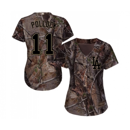 >Women's Los Angeles Dodgers #11 A. J. Pollock Authentic Camo Realtree Collection Flex Base Baseball Jersey