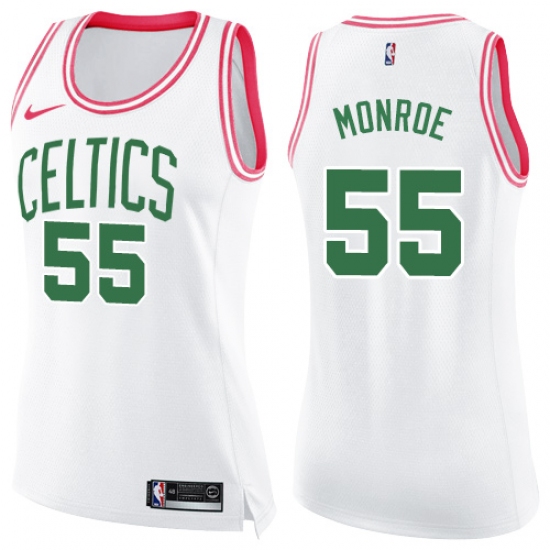 Women's Nike Boston Celtics #55 Greg Monroe Swingman White/Pink Fashion NBA Jersey