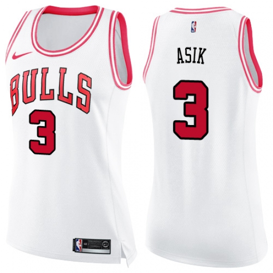 Home>NBA>Chicago Bulls>Omer Asik>Women's Nike Chicago Bulls #3 Omer Asik Swingman White/Pink Fashion NBA Jersey