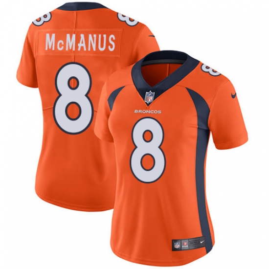 Women's Nike Denver Broncos #8 Brandon McManus Orange Team Color Vapor Untouchable Limited Player NFL Jersey