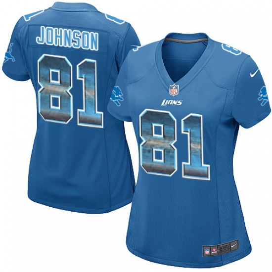 Home>NFL>Detroit Lions>Calvin Johnson>Women's Nike Detroit Lions #81 Calvin Johnson Limited Blue Strobe NFL Jersey