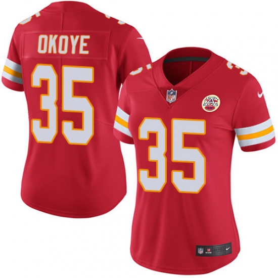 Home>NFL>Kansas City Chiefs>Christian Okoye>Women's Nike Kansas City Chiefs #35 Christian Okoye Red Team Color Vapor Untouchable Limited Player NFL Jersey