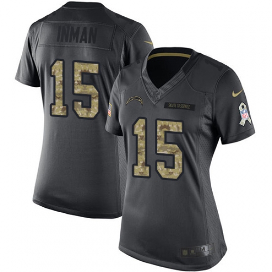 Home>NFL>Los Angeles Chargers>Dontrelle Inman>Women's Nike Los Angeles Chargers #15 Dontrelle Inman Limited Black 2016 Salute to Service NFL Jersey