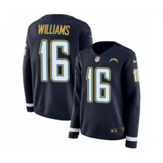 >Women's Nike Los Angeles Chargers #16 Tyrell Williams Limited Navy Blue Therma Long Sleeve NFL Jersey