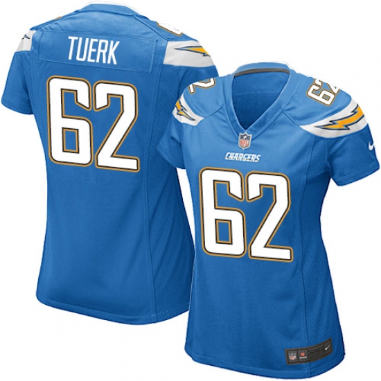 Home>NFL>Los Angeles Chargers>Max Tuerk>Women's Nike Los Angeles Chargers #62 Max Tuerk Game Electric Blue Alternate NFL Jersey