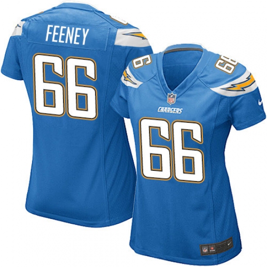 Home>NFL>Los Angeles Chargers>Dan Feeney>Women's Nike Los Angeles Chargers #66 Dan Feeney Game Electric Blue Alternate NFL Jersey