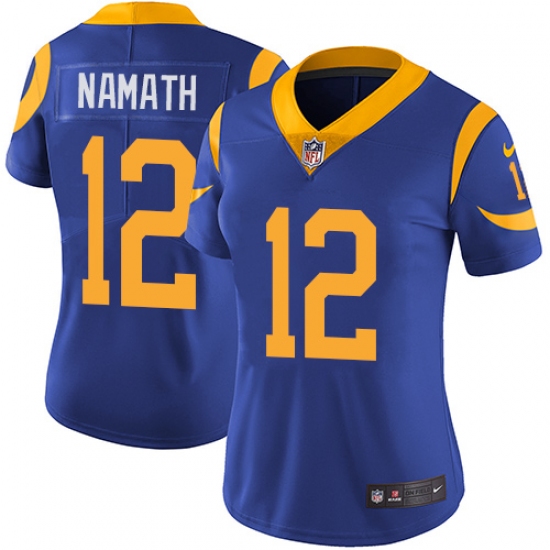 Home>NFL>Los Angeles Rams>Joe Namath>Women's Nike Los Angeles Rams #12 Joe Namath Royal Blue Alternate Vapor Untouchable Limited Player NFL Jersey
