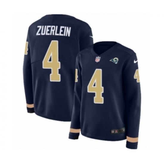 >Women's Nike Los Angeles Rams #4 Greg Zuerlein Limited Navy Blue Therma Long Sleeve NFL Jersey
