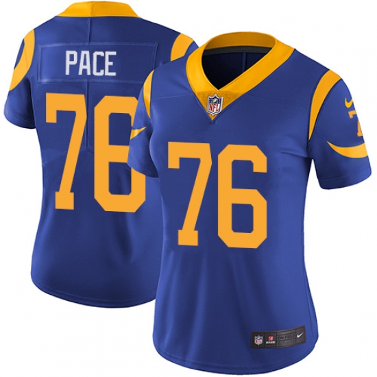 Women's Nike Los Angeles Rams #76 Orlando Pace Royal Blue Alternate Vapor Untouchable Limited Player NFL Jersey