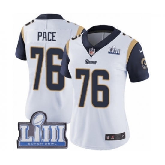 Women's Nike Los Angeles Rams #76 Orlando Pace White Vapor Untouchable Limited Player Super Bowl LIII Bound NFL Jersey