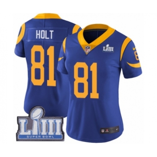 Women's Nike Los Angeles Rams #81 Torry Holt Royal Blue Alternate Vapor Untouchable Limited Player Super Bowl LIII Bound NFL Jersey