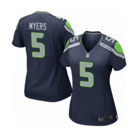 >Women's Seattle Seahawks #5 Jason Myers Game Navy Blue Team Color Football Jersey