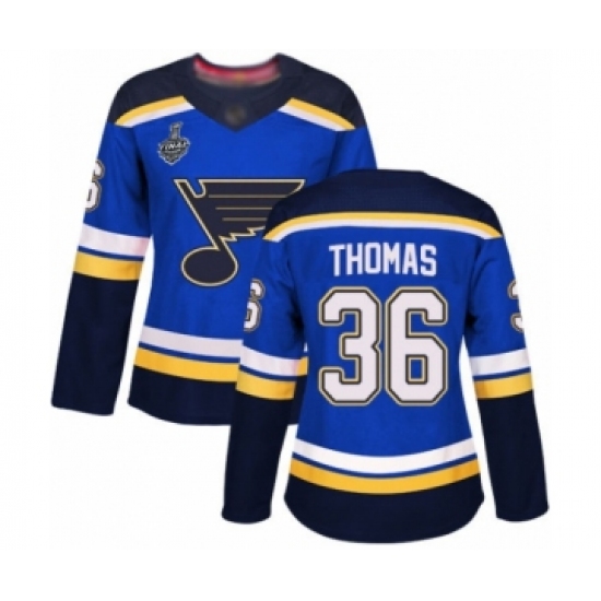 >Women's St. Louis Blues #36 Robert Thomas Authentic Royal Blue Home 2019 Stanley Cup Final Bound Hockey Jersey