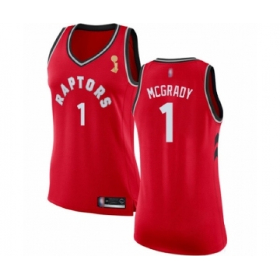>Women's Toronto Raptors #1 Tracy Mcgrady Swingman Red 2019 Basketball Finals Champions Jersey - Icon Edition