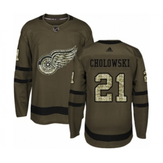 >Youth Adidas Detroit Red Wings #21 Dennis Cholowski Premier Green Salute to Service NHL Jersey