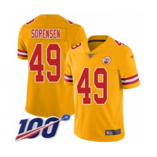 >Youth Kansas City Chiefs #49 Daniel Sorensen Limited Gold Inverted Legend 100th Season Football Jersey