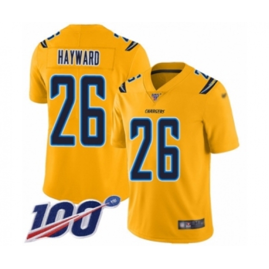 >Youth Los Angeles Chargers #26 Casey Hayward Limited Gold Inverted Legend 100th Season Football Jersey