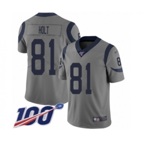 >Youth Los Angeles Rams #81 Torry Holt Limited Gray Inverted Legend 100th Season Football Jersey