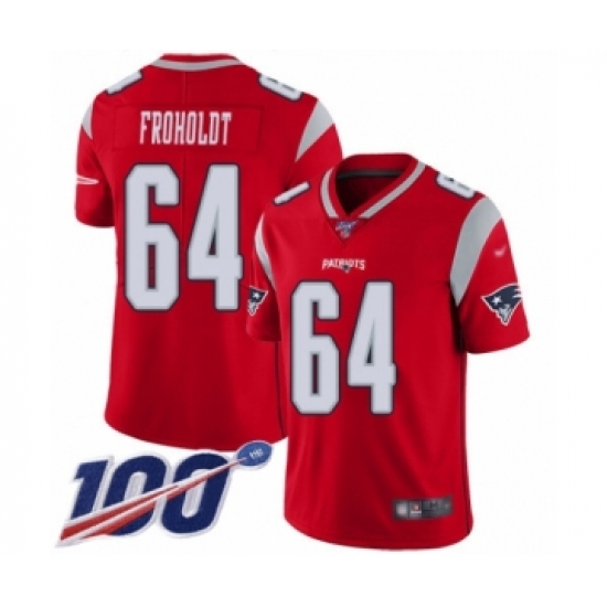 >Youth New England Patriots #64 Hjalte Froholdt Limited Red Inverted Legend 100th Season Football Jersey