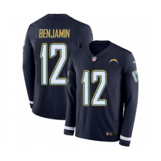 >Youth Nike Los Angeles Chargers #12 Travis Benjamin Limited Navy Blue Therma Long Sleeve NFL Jersey