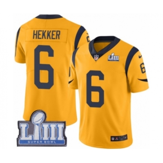 Youth Nike Los Angeles Rams #6 Johnny Hekker Limited Gold Rush Vapor Untouchable Super Bowl LIII Bound NFL Jersey