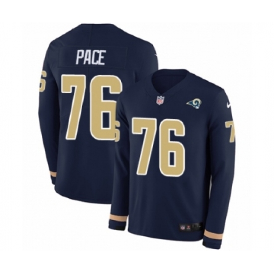 Men's Nike Los Angeles Rams #76 Orlando Pace Limited Navy Blue Therma Long Sleeve NFL Jersey