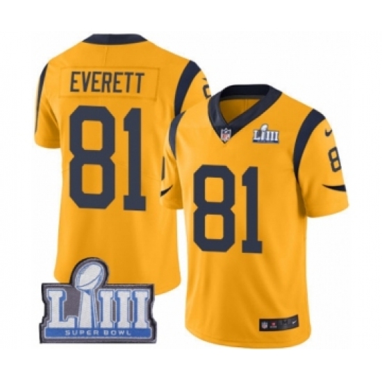 Youth Nike Los Angeles Rams #81 Gerald Everett Limited Gold Rush Vapor Untouchable Super Bowl LIII Bound NFL Jersey